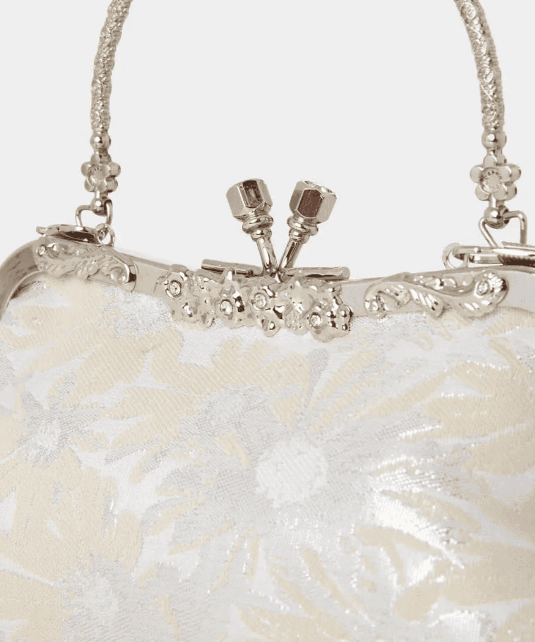 This exquisite bag is packed with remarkable details. From the shimmering, floral jacquard fabric to the detachable strap and ornate, vintage-style metal frame, this bag adds showstopping elegance to your best looks.