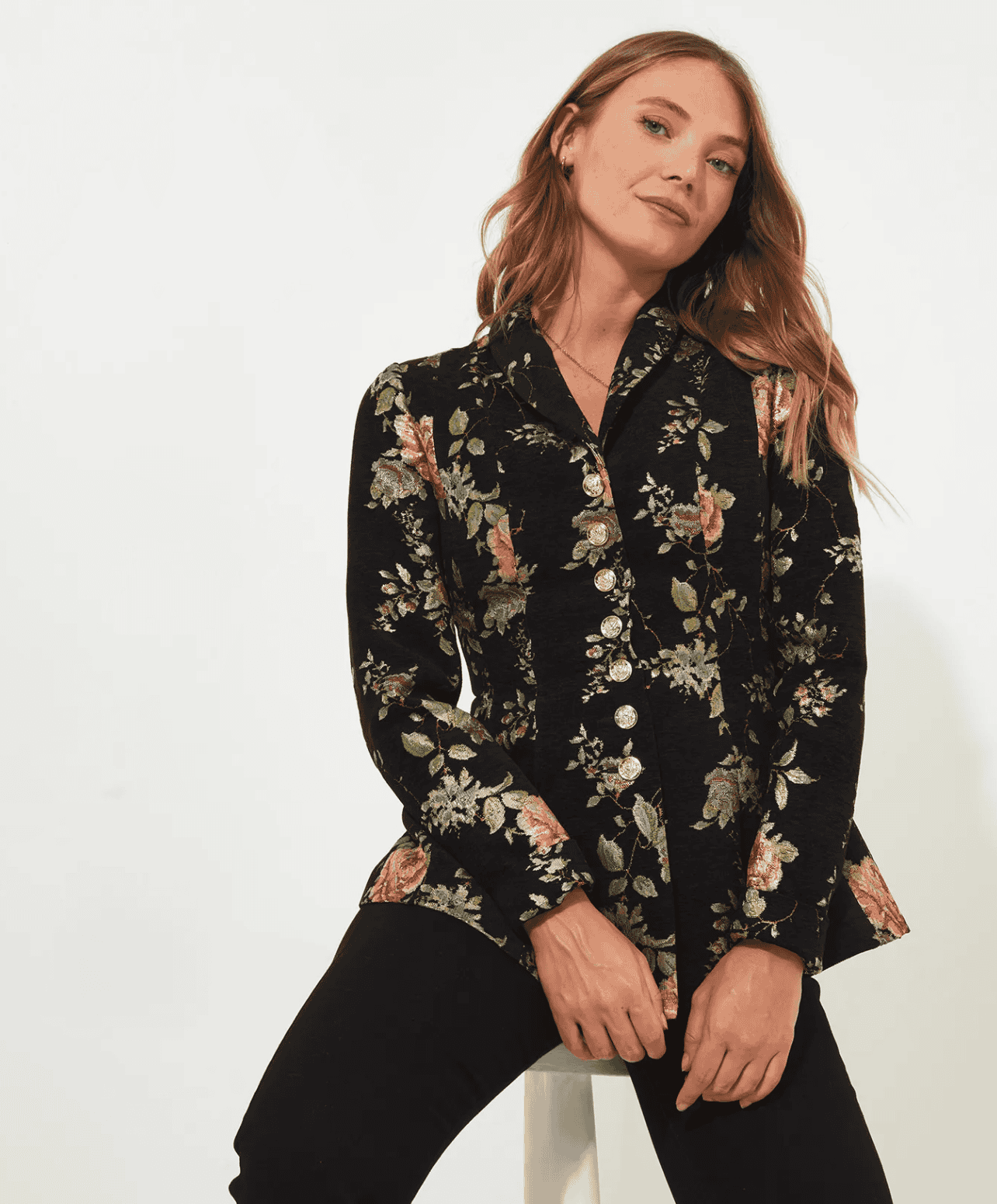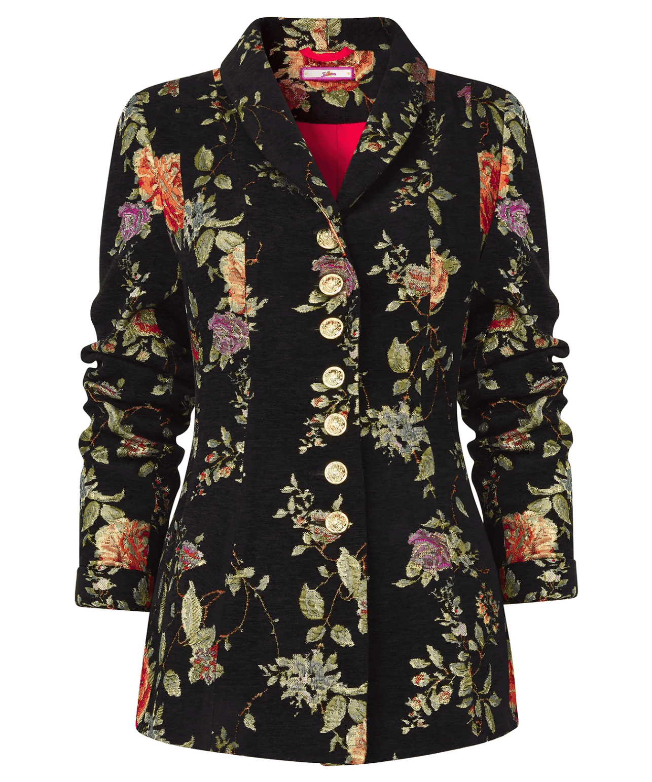 Our lavish brocade jacket will add a splash of luxury to your autumn wardrobe. Its rich print oozes feminine sophistication, and it’s set off perfectly by the stunning gold effect buttons. We’ve nipped it in slightly at the waist too, for a more premium fit.