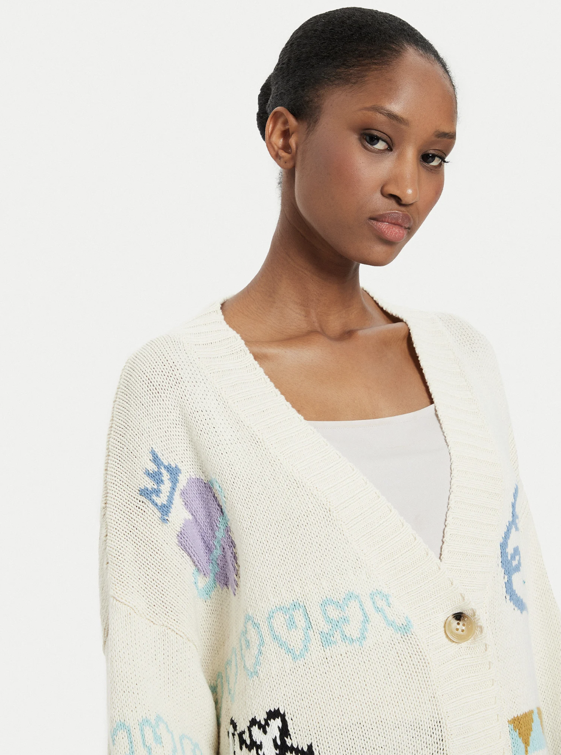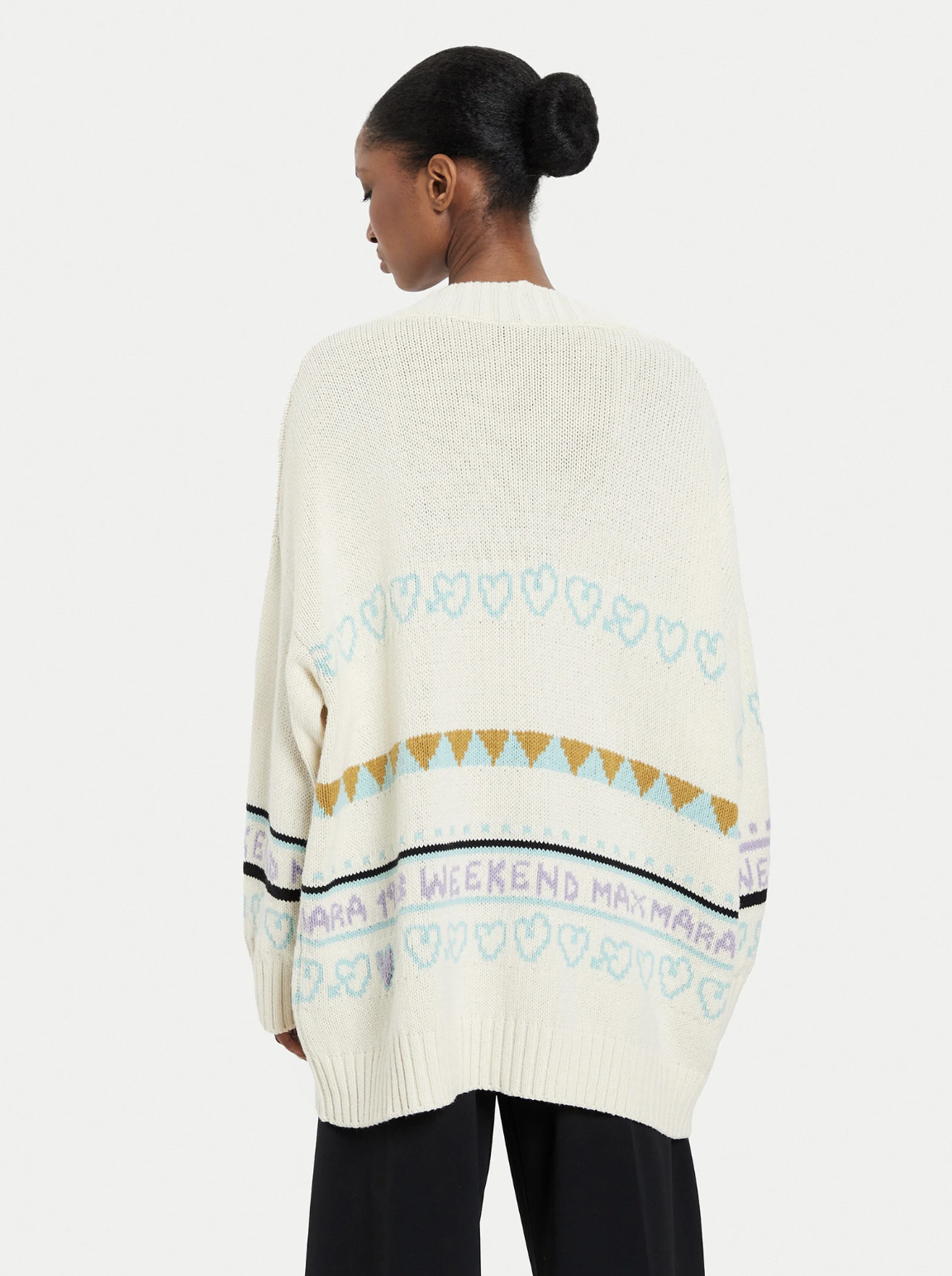 Indulge in understated luxury with this exquisitely crafted cardigan by Max Mara. Designed for the modern connoisseur, this piece blends classic tailoring with a whisper of abstract charm.