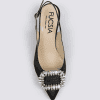 Impeccably crafted in Italy, this shoe dazzles with its faux diamond embellishments and a chic flared kitten heel measuring 5cm. The premium leather upper, lining, and sole ensure utmost comfort and quality. With its luxurious design, it effortlessly melds traditional craftsmanship with modern allure, making it an iconic piece in the world of luxe fashion.