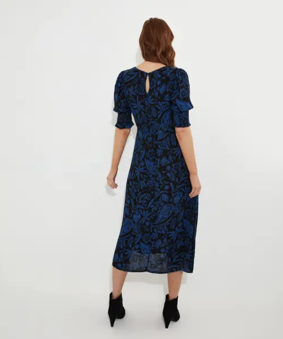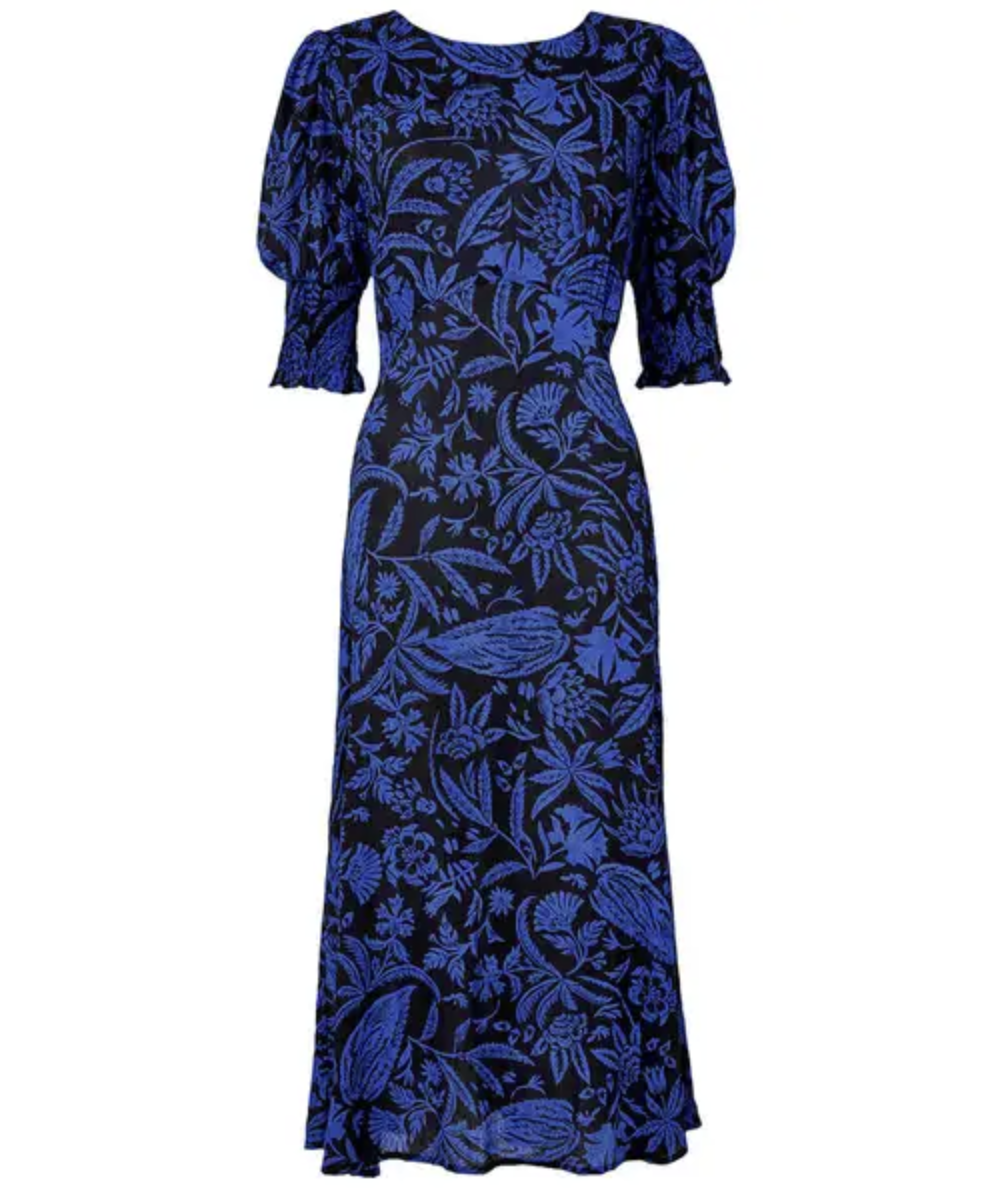 This stunning dress will instantly elevate your style. Putting a unique twist on classic florals, the blue design pops off the fabric to uplift your winter wardrobe. Bursting with character thanks to its pretty puffed sleeves, we love pulling out its vintage vibes with riding boots or Mary Janes.