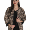 Two looks in one, this reversible jacket offers effortless versatility. One side features a bold leopard print for when you’re feeling playful; the other, sleek all-black for a more understated mood. Crafted in a quilted design for warmth and structure, it’s finished with a matching leopard print rosette brooch—adding a touch of statement charm no matter which way you wear it. A standout piece for layering with confidence.