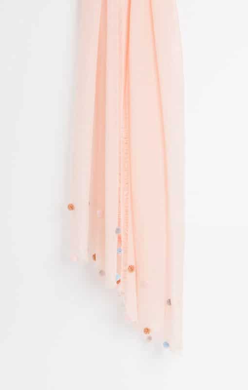 This Scarf is super soft! It includes pompom detailing and frayed edges. The Sadie Scarf has a lightweight and semi-sheer finish.