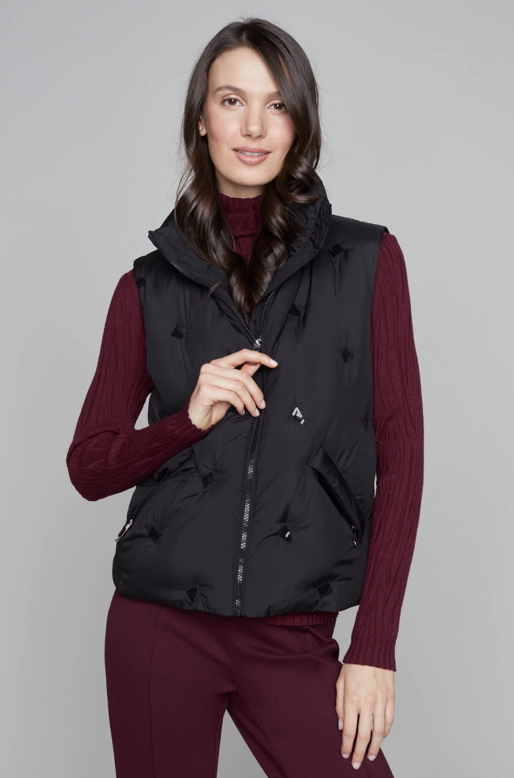 This stylish black puffer vest is the perfect blend of warmth and edgy fashion, featuring striking silver studs that add a touch of glam to your winter wardrobe. Lightweight yet cozy, it provides excellent insulation without bulk, making it ideal for layering over your favorite sweaters or under a chic coat