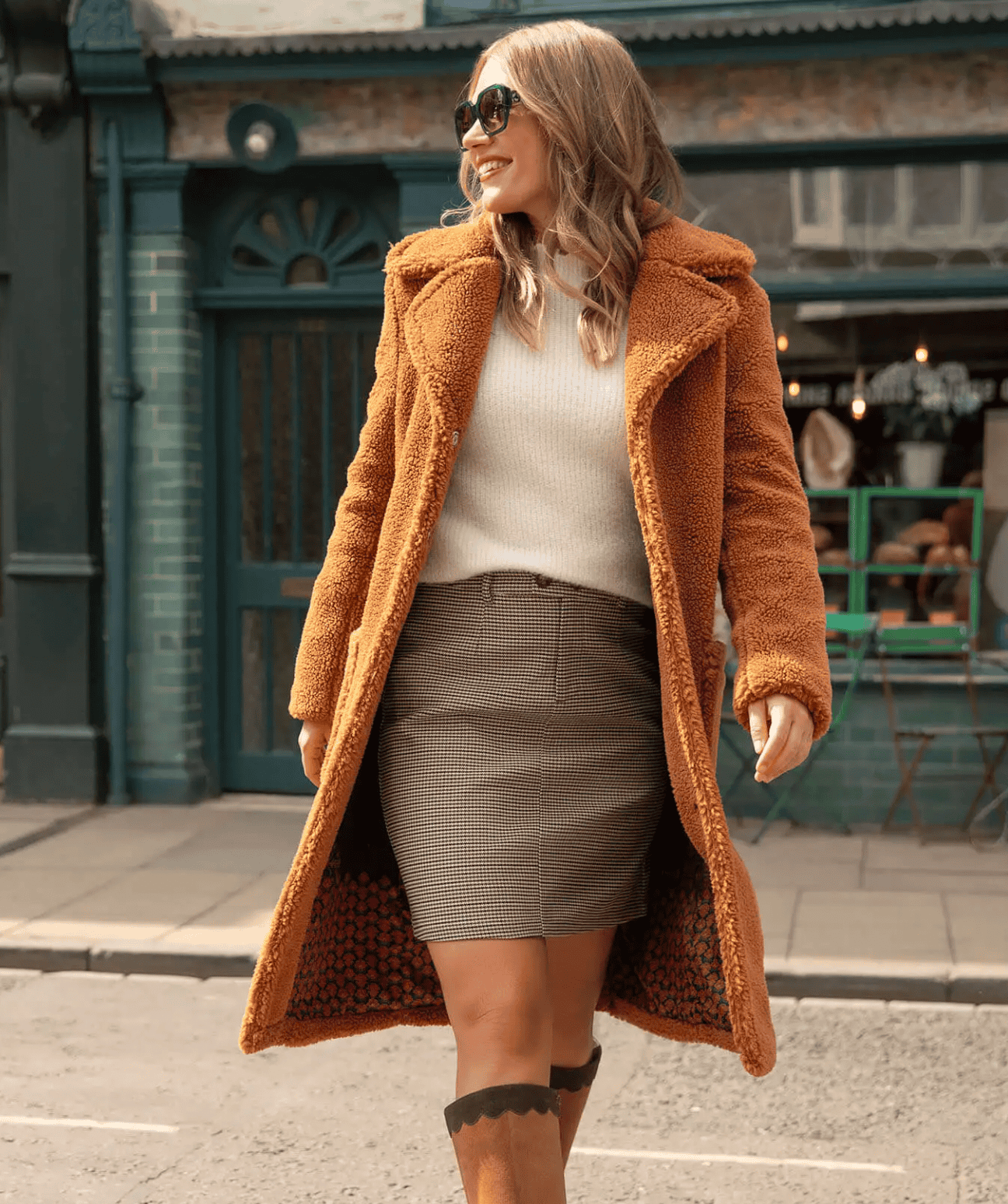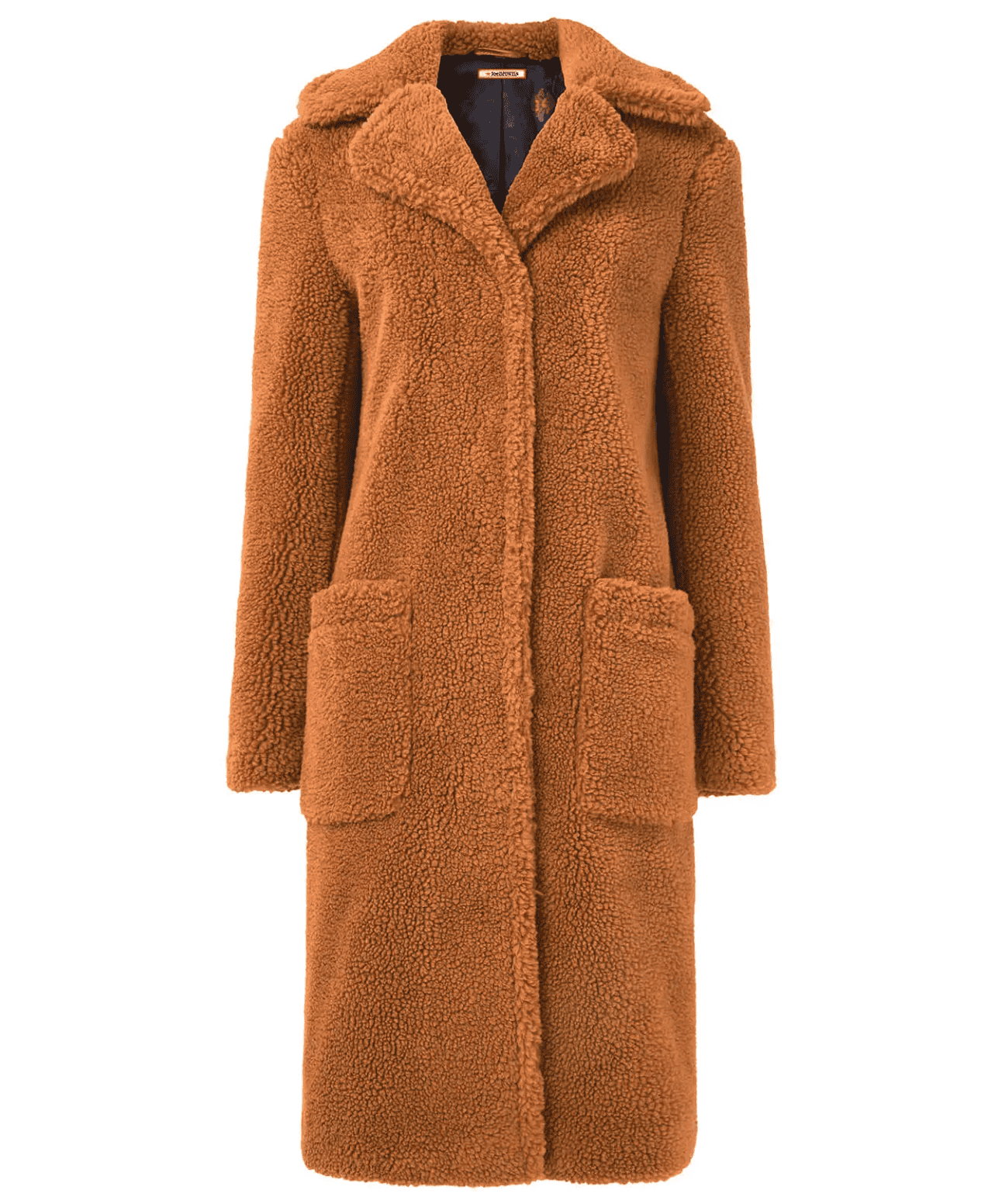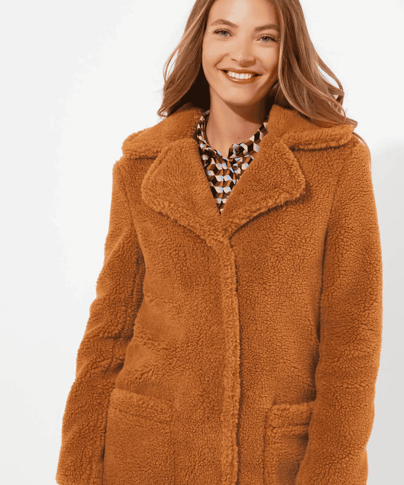 This oversized teddy coat is a real seasonal staple. Designed for style and warmth, we used a brand-new caramel colour then added a statement collar to help it stand out. Featuring two large pockets, this caramel teddy coat is as practical as it is stylish. Soft, cosy and really easy to wear, it’ll effortlessly keep out the winter chill.