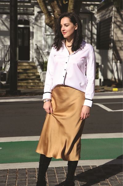 Choose a classic style, crisp cotton with a collar or a soft chiffon with a bow, that suits your figure and complexion and wear it every time you “have nothing to wear”.