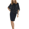 The navy dress with a chiffon laced overlay exudes timeless charm and delicate femininity. The combination of the deep navy hue and the intricate chiffon lace overlay creates a captivating and elegant ensemble, making it a perfect choice for special occasions and formal events.