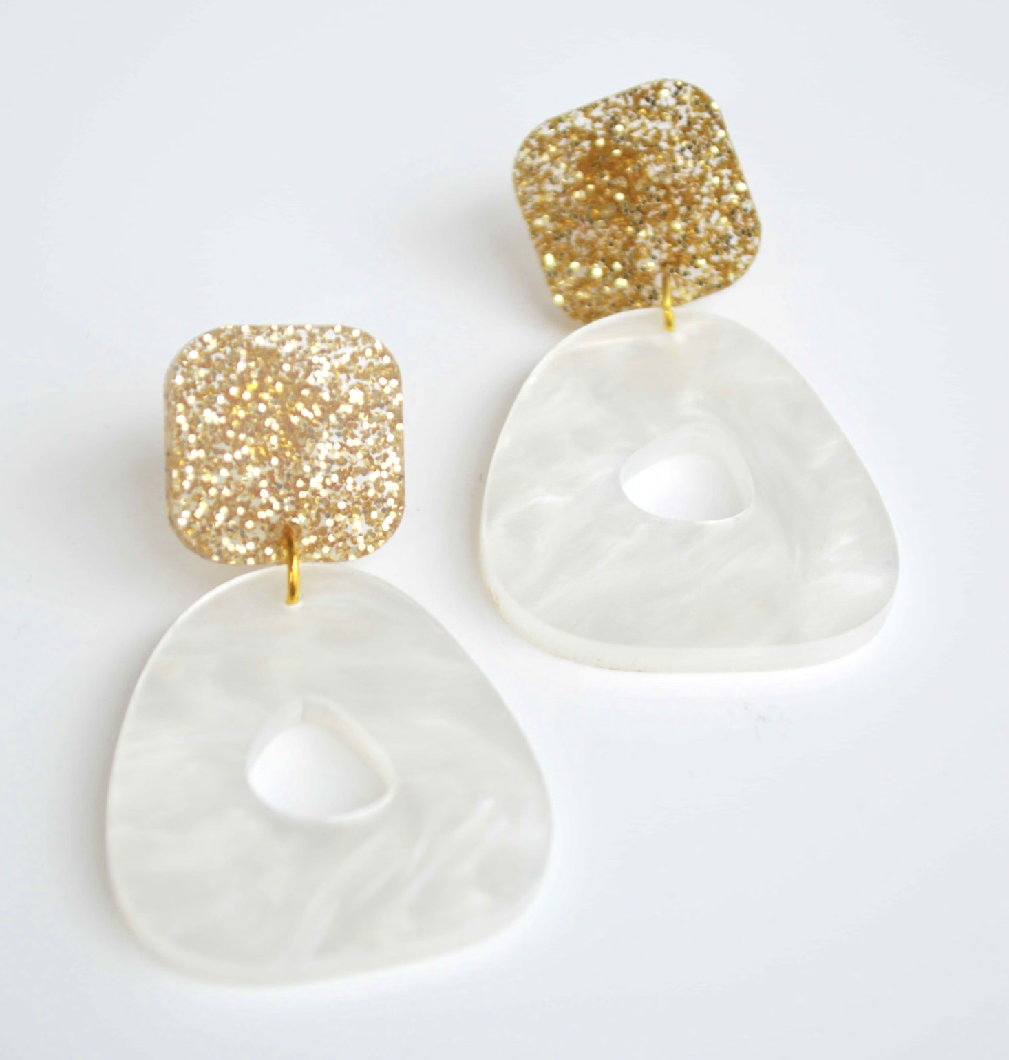 Little bit of party! Gold glitter and marbled pearl acrylics – what a combo! The perfect pair for a celebration or just to wear to the gym – whatever floats your boat!