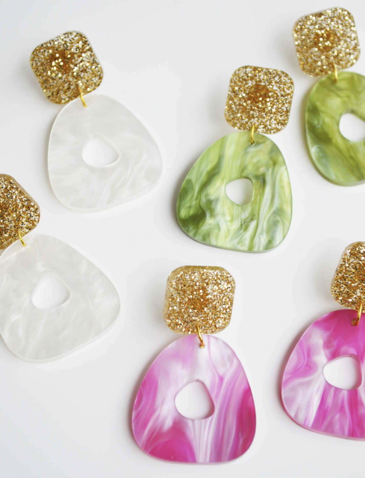 Nickel and lead free earring posts, glued and resined for extra durability.