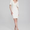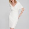 This scuba crepe dress perfectly combines elegance and allure, featuring a beautiful wrap neckline and dolman sleeves. The dress is decorated with delicately applied pearls, making it a true statement piece. It also has a chic back V-neckline and a convenient back zipper opening, ensuring a flawless fit. The dress is fully lined, providing a luxurious and comfortable feel. Part of the Signature Collection.